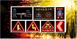 기존의 도로표지판은 반사 시트지를 표면에 부착한 후 자동차의 불빛에 의해 재귀반사를 이용하는 표지판이라면, 발광형 교통안전표지는 기존표지판에 광섬유를 일정간격으로 배열하여 빛을 발하도록 제품을 구성한 후, 태양전지를 이용해 낮 동안 에너지를 축전지에 보관하였다가 야간에도 스스로 빛을 발하는 도로표지판을 뜻합니다.