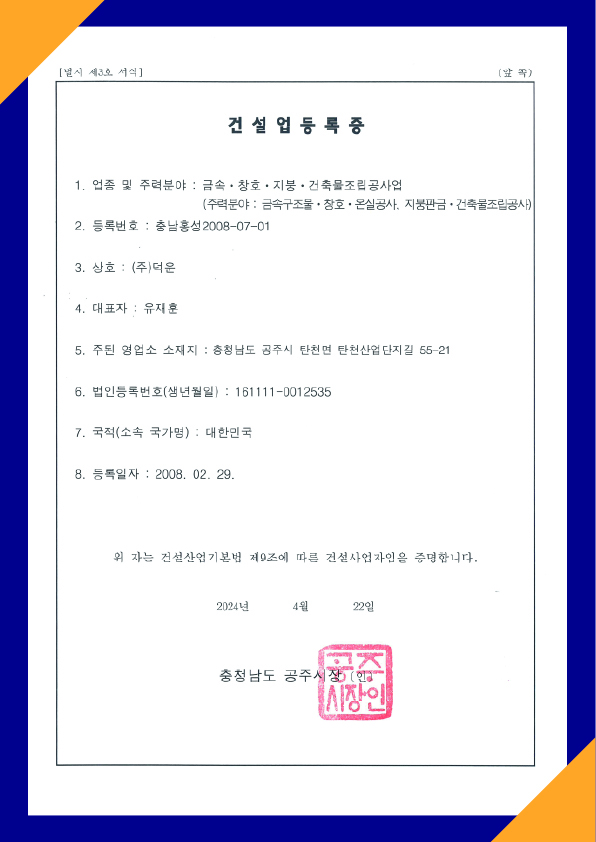 건설업 등록증