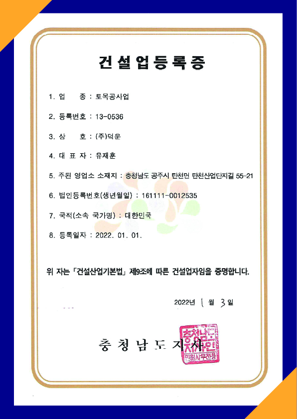 건설업 등록증(토목공사업)