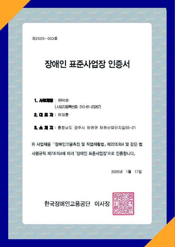 장애인 표준사업장 인증서