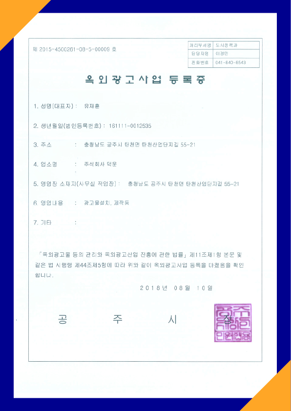 옥외광고 등록증