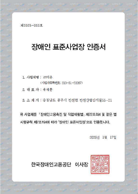 ㆍ『장애인고용촉진 및 직업재활법 시행규칙』 제3조 따른 장애인 표준사업장 기준을 충족하여 공단으로부터 인증을 받은 사업장을 말합니다.