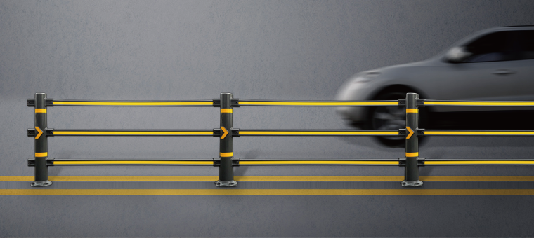 보행자의 무단횡단을 방지하고 운전자의 시안성을 향상시키기 위한 도로용 중앙분리대로써 어린이보호구역, 유턴금지구역 등의 차선 침범에 대한 규제가 필요한 곳이나 교통사고의 발생위험이 높아 운전자의 주의가 상당히 요구되는 장소에 노면표시를 보조하는 역할을 하는 무단횡단금지시설입니다.